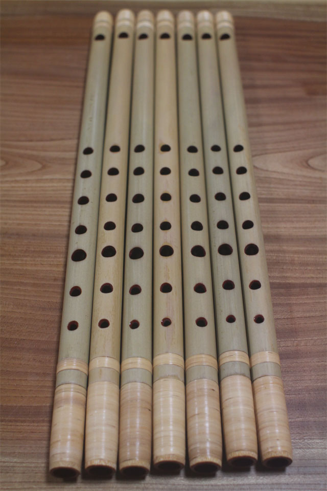 そんなことで、材料の竹を選ぶ時は10管ずつ作れるように多めに用意します。ただ、三笨調子になると材料自体の数が少なく、選ぶのにかなり苦戦します。今回もなんとか14管分用意して作り始めましたが、作っている途中でこれは「あまり良く無い」と判断した竹は捨ててしまうので、結局は7管になってしまいました。