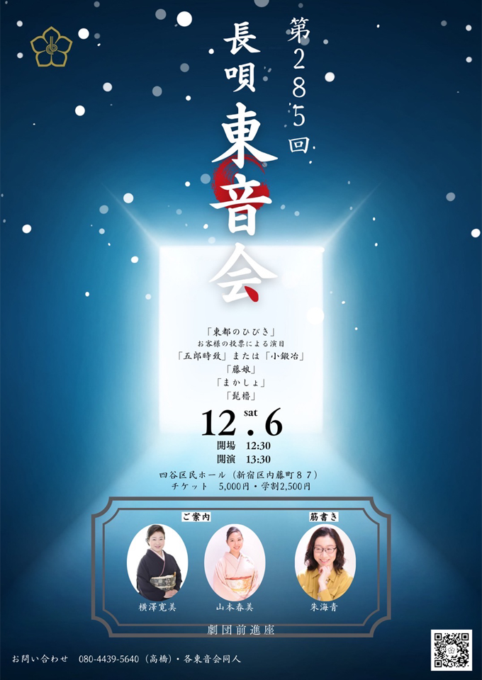 2025年12月6日 第285回 東音会に藍ノ会の先生が出演します。