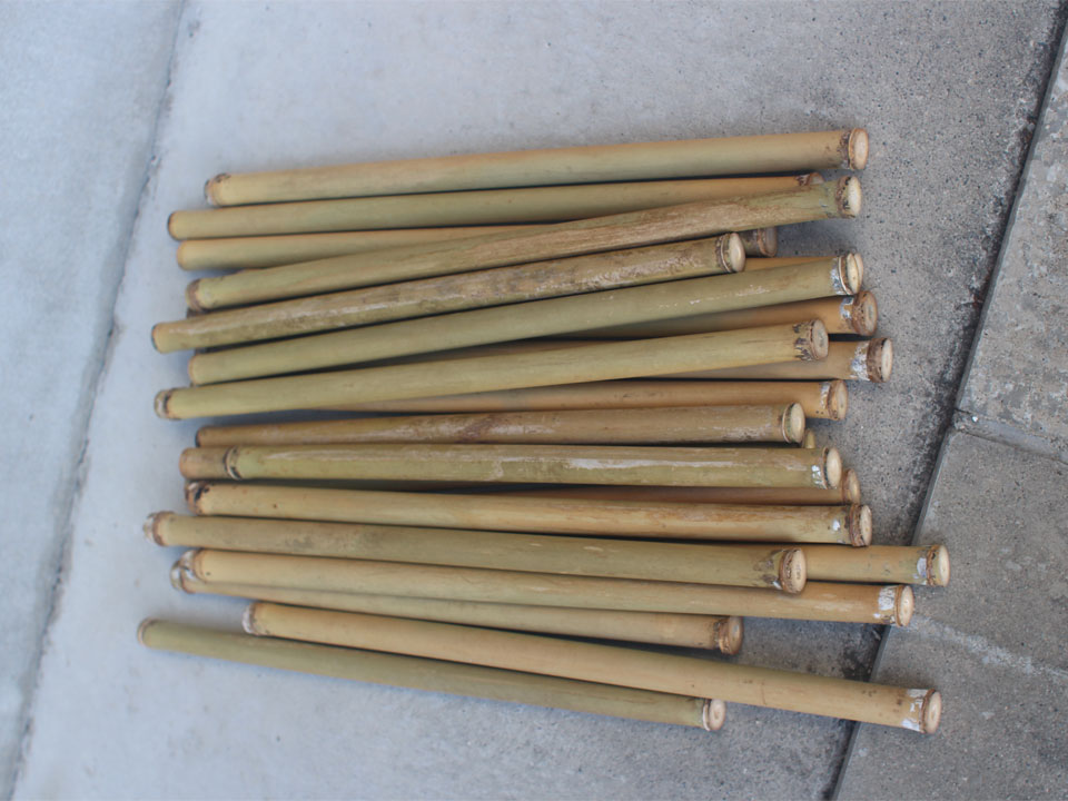 能管用の竹はある程度の太さが必要で、全体から見ると数か少ないので見つけた時はとっておくことにしています。一笨調子と同じくらいの太さなのですが、節間の長さが短くても大丈夫なので。一笨調子に比べれば数はあります。ちなみに…一笨調子用の竹は、1年に1本あるか無いかぐらいです。